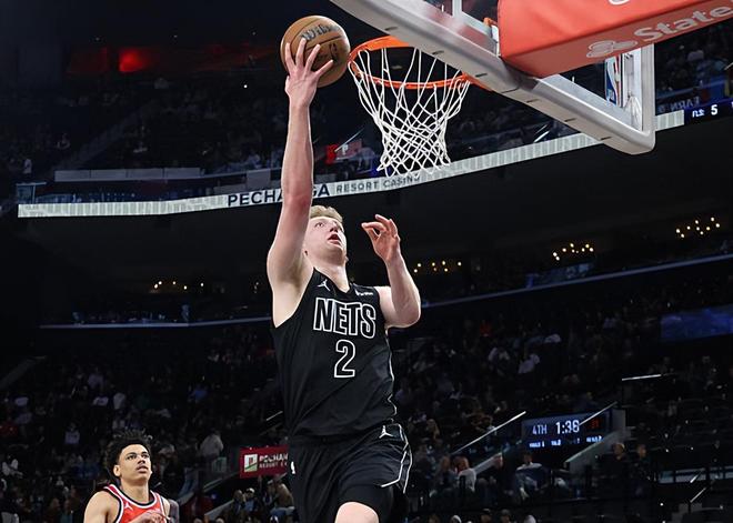 本场比赛中,篮网的替补锋线新秀丹尼-沃尔夫(Danny Wolf)又一次打出了灾难级别的表现。沃尔夫全场出场25分52秒,投篮13中3,三分线外7中1,罚球8中7,得到了14分7篮板4助攻1抢断1盖帽的数据,还有2次犯规,正负值为-22。沃尔夫在本场比赛中得到了大量的球权和不少的出手机会,然而他的进攻效率依然是一塌糊涂的水平,他在三分线外的手感依然是惨不忍睹的水平,他也没有办法得到更多的分数。沃尔夫看起来具备一定的传球能力,但是他在场上时球队的进攻其实是相当不利的。除此之外,沃尔夫在防守端的表现很不理想,他并不是一名可靠的防守者。沃尔夫在场上时球队的局面一塌糊涂,这也能够体现在他超低的正负值上。