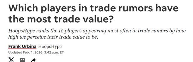 继续开抢!在数支球队已经敲定交易后,美媒《hoopshype》更新交易市场剩余的TOP12大鱼名单,其中字母哥夺魁,浓眉哥屈居第6。