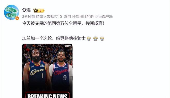 交易的具体方案是骑士送出加兰和一个2026年的次轮选秀权,从快船得到哈登,对于36岁的哈登而言,这次转会意味着向总冠军发起又一次冲击,为了促成交易,他主动放弃了合同中的交易否决权以及价值约230万美元的交易保证金。