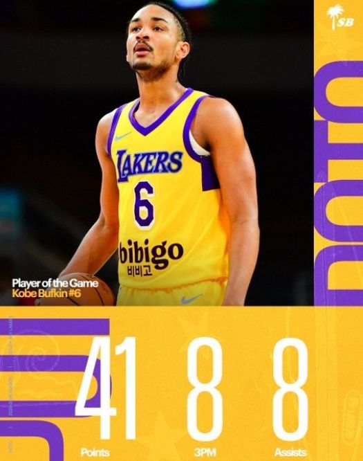 巴夫金本赛季在湖人下属球队南湾湖人表现出色,在2月5日的一场G耐力赛比赛中,南湾湖人124-111击败奇才下属球队首都城市Go-Go。该场比赛,巴夫金出战40分钟17中11,其中外线三分13中8,外加罚球7中6,狂轰41分2篮板8助攻2抢断的给力数据。