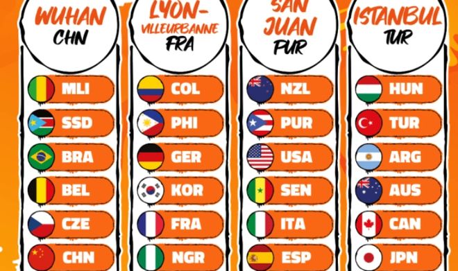 中国女篮被分在A组,在主场参加比赛,比赛地点是武汉。