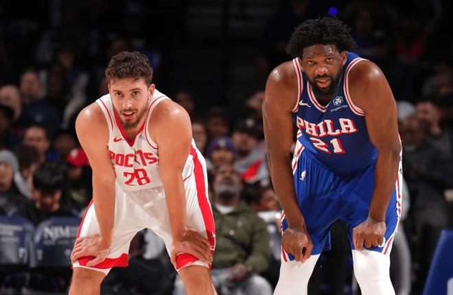 其实还有一个现役超级中锋,这几年他有点被遗忘了,那就是恩比德。早些时候,恩比德在联盟的地位,和约老师还是一个级别,黑白双煞,两人都作为空间型内线,各有各的特点,个人能力都很强势。23年也是恩比德最辉煌的一年,实现了个人荣誉小满贯,场均33.1分10.2篮板4.2助攻,斩获得分王的同时,入选了最佳阵容一阵,还拿到了职业生涯第一个MVP。23-24赛季,恩比德本有机会再实现突破,常规赛前39场比赛,他场均出战33.6分,可以得到34.7分11.0篮板5.6助攻,成为NBA历史上,张伯伦之后唯一一位,在场每分钟得分超过1分的球员。