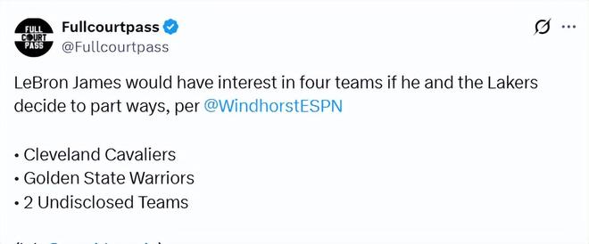 北京时间2月12日,ESPN名记文霍斯特在播客节目上谈到了詹姆斯的未来。他表示,如果詹姆斯和湖人在休赛期分手,他有兴趣加盟三到四支球队,骑士和勇士在其中,另外一两支暂时不方便透露。