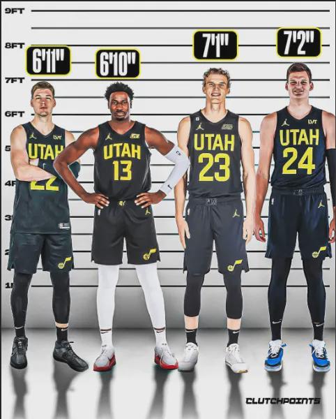 加上三四号位摇摆的马尔卡宁和菲利波斯基,还有1米93的乔治,爵士可以摆出一套全NBA最高,但却可以能内能外,机动性不俗,每个人都能投三分,让科尔看不懂的超高阵容。