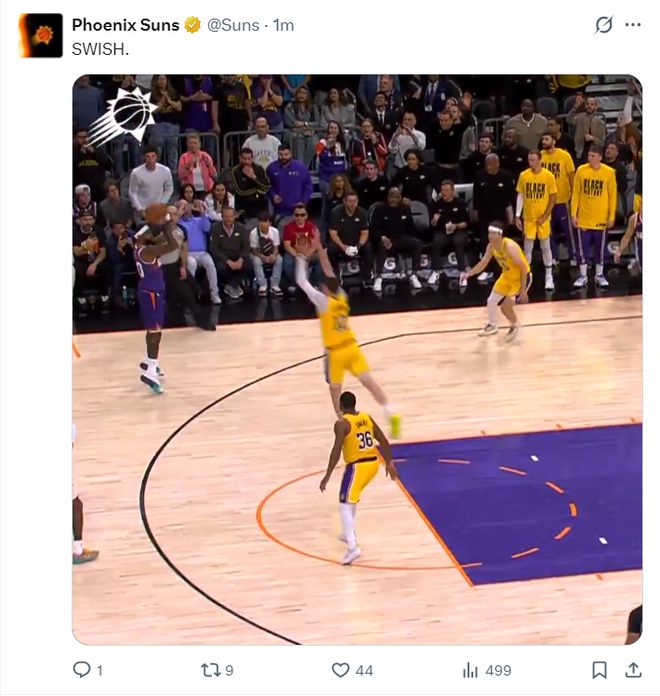 ESPN晒出布克、狄龙两个核心在场下看戏,东契奇还拿到41+8+8的数据还是湖人输,本赛季太阳面对湖人3胜1负。
