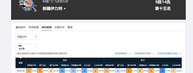 其实新疆男篮第一阶段防守做的不错,除限制对手篮下命中率表现出色外,防对手有效命中率,中距离命中率也均联盟前五水平。但没办法球队进攻质量一般,尤其是在中远距离投射上,这极大限制了球队的上限。