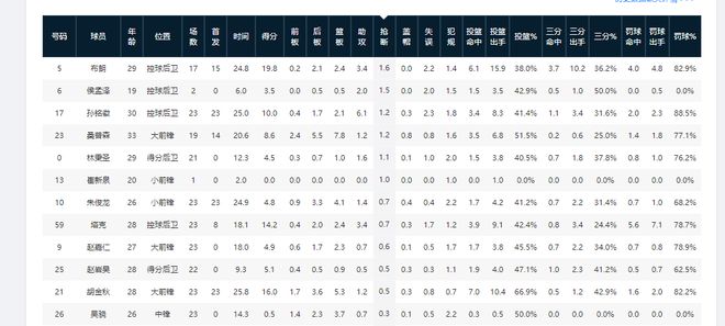 让对手三分投的多,但又让他们命中率不高,说明广厦男篮的外线防守很有针对性。这两项数据基本印证了他们善用外线包夹对手持球人,重点锁死对方外线投手的防守策略。