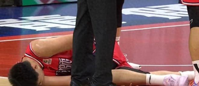 郭艾伦突然提速发动快攻,意图借转换节奏强攻篮下,为球队锁定胜局。就在他左腿屈膝蓄力、蹬地跃起准备上篮的一刹那,变故猝不及防降临。