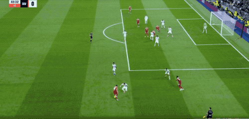 第34分钟,姆巴佩面对两人包夹,穿墙而过,但塞维利亚的第二堵墙迅速建立,姆巴佩被撞了一下,失去球权。