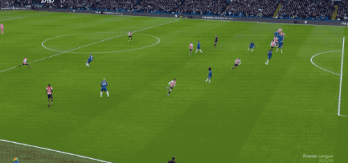 第21分钟,布伦特福德获得绝佳机会,沙德利用速度突入禁区,冷静晃过飞铲的凯塞多,直面桑切斯,居然选择了传球,错失良机。
