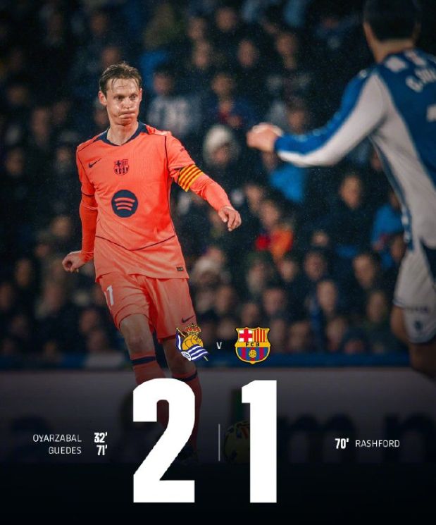 下半场替补登场的拉什福德成为巴萨为数不多的亮点,第70分钟他接亚马尔精妙传中头球破门,帮助球队艰难扳平比分。但巴萨的喜悦仅持续1分钟,皇家社会便迅速反击,索莱尔头球被扑后机敏回做,格德斯禁区右侧凌空抽射完成致命一击,比分再度改写为2-1。此后巴萨发起狂攻,孔德头球击中横梁,替补登场的莱万多夫斯基也多次制造威胁,补时阶段角球机会再度中柱,全场五次击中门框让巴萨空有74%的控球率和16脚射门,却始终无法再度扳平比分。