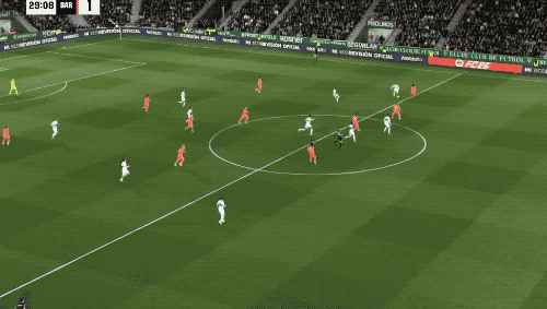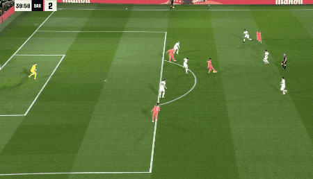 第40分钟,德容无私传球,费兰·托雷斯无人盯防,终于将球打进。半场结束,巴萨狂轰17脚,获得大把机会,却只取得了1球的领先。