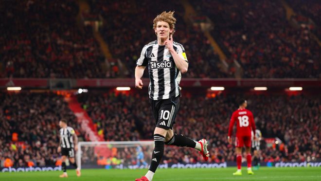 第36分钟,纽卡斯尔的进攻从左路来到右路,戈登的低射,攻破阿利松的十指关。