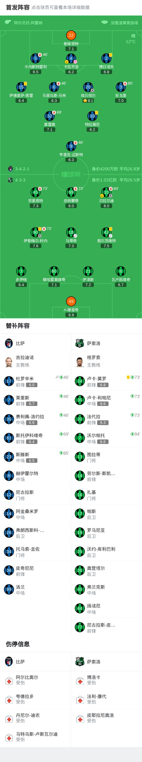 第25分钟,萨索洛球员索尔茨维特助攻贝拉尔迪打入一球。