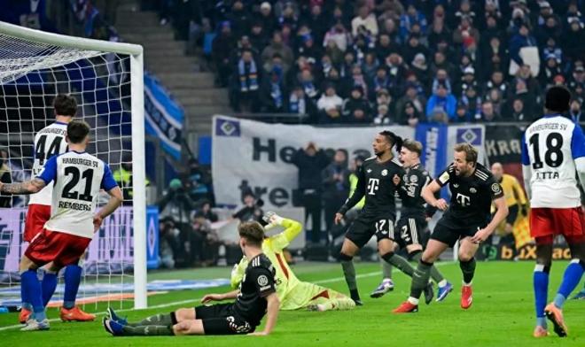 第13分钟,拜仁终于创造出机会,奥利塞在禁区内获得近距离抽射的好机会,结果他的射门被汉堡门将奋力扑出;紧接着卡尔在禁区左侧跟上补射,又被对方门将化解,连续错失良机让拜仁球迷看得心急。更让人意外的是,汉堡的反击打得有声有色,第24分钟卡帕尔多在禁区右侧起脚低射,诺伊尔反应迅速倒地将球扑出,再次拯救了拜仁。4分钟后,基米希在禁区前沿完成一脚势大力沉的怒射,结果皮球狠狠砸在横梁上弹出,拜仁就这样错失了半场最佳得分机会。落后之后的拜仁终于找回了一点状态,8分钟后就扳平了比分。这次又是凯恩站了出来,他在门前接到队友传球后迅速转身射门,皮球直钻网窝,1-1!这粒进球也让凯恩延续了自己的进球势头,不愧是本赛季德甲的"进球机器"。之后格纳布里曾打进一球,结果裁判示意传球的凯恩越位在先,进球无效,拜仁错失反超机会。半场结束,两队1-1战平。看看上半场数据,拜仁控球率高达70%,完成8次射门打进1球;而汉堡虽然控球率落后,却完成了9次射门,同样收获1球,攻防效率一点不比拜仁差。