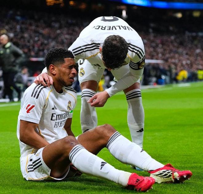 比赛开打不久,皇马就遭遇重创,贝林厄姆无对抗的情况下重伤离场,好在维尼修斯很快就用进球,帮助银河战舰取得了领先,但下半场后防的盯人不紧,让巴列卡诺迅速追平比分,伤停补时阶段迪亚斯为皇马赢得点球,姆巴佩主罚命中,帮助皇马艰难2-1绝杀了巴列卡诺。