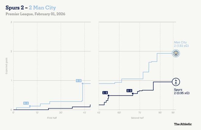 英超第24轮,热刺主场2-2战平曼城,赛后,The Athletic发表专题文章,分析并点评了本场比赛。
