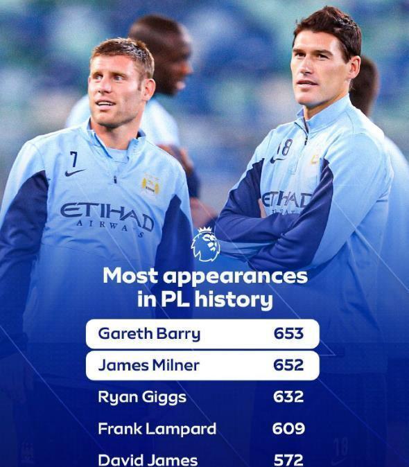 米尔纳早已超越吉格斯、巴里和费迪南德等名宿,成为英超历史上出场赛季最多的球员-9。当这两项纪录集于一身时,这位曾在曼城和利物浦获得英超冠军、在利物浦赢得欧冠奖杯的传奇球员,将被永远镌刻在英超丰碑上。