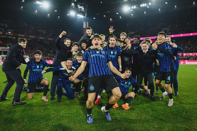 欧青联(青年欧冠)十六分之一决赛,国际米兰U19在科隆一线队体育场5W主队球迷的助威下,硬生生绝杀对手!成功晋级下一轮!使得科隆主场一片安静!此为两倍快乐!