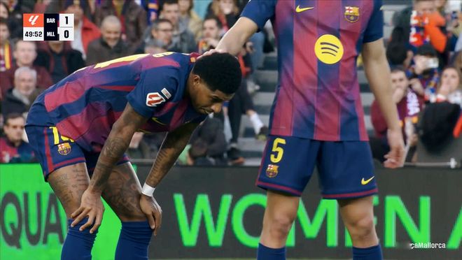 落后的马略卡,进攻端逐渐投入更多的精力,但是巴萨利用控球稳住局面。补时阶段,莱万制造禁区前沿位置非常好的定位球,拉什福德大力抽射,被门将奋力扑出!后点的亚马尔面对空门,错失良机!半场比赛结束,巴萨暂时一球领先。