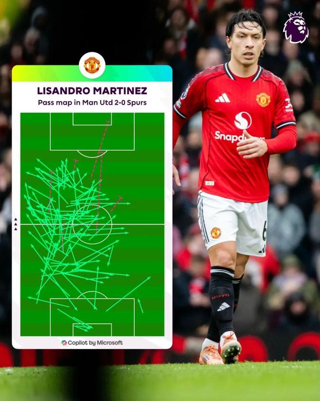 但周六的情况并非如此,他们以高效的方式2-0轻取热刺,就此卸下了心理包袱。利桑德罗·马丁内斯是那位从后场深处主导比赛节奏的球员。在获得时间和空间进行传球组织的情况下,他最终109次传球尝试成功了103次,两项数据均排名第一。