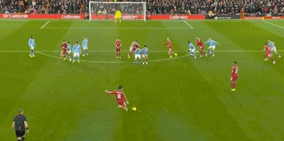 第74分钟,利物浦获得前场定位球,索博斯洛伊离门20米外打出无解远射,皮球击中立柱入网,多纳鲁马站在原地目送,1-0!