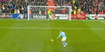 第92分钟,阿利松禁区内扑倒努内斯,裁判判罚点球,随后哈兰德操刀命中,完成传射建功好戏,曼城反超比分,2-1!