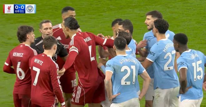 第68分钟,萨拉赫形成单刀被格伊拉倒,主裁判鲍森并未第一时间判罚点球,这让利物浦球员非常不满。随后,两队球员都围住了鲍森,鲍森此时向格伊出示黄牌。