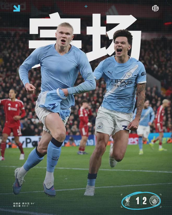 安菲尔德的夜晚,空气里弥漫着宿命对决的硝烟。当终场哨响,记分牌定格在1-2,整个球场陷入死寂,而客队替补席和看台上的蓝月军团,则爆发出压抑已久的怒吼。这不仅仅是一场普通的联赛胜利,这是一场宣告王者归来的复仇之战,是一场足以写入英超史册的经典逆转。