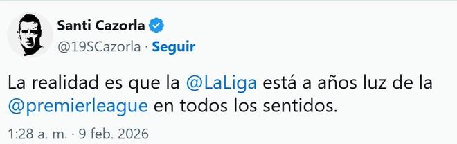 在个人社交平台上,卡索拉毫不留情地写道:“现实是,西甲在各个方面都与英超相差好几个层级。”这条简短却尖锐的发言迅速引发热议,并在网络上广泛传播。