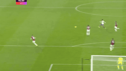 两分钟后,西汉姆联还以颜色,萨默维尔禁区前横向盘带后兜射远角,拉门斯双龙出海,将球击出。