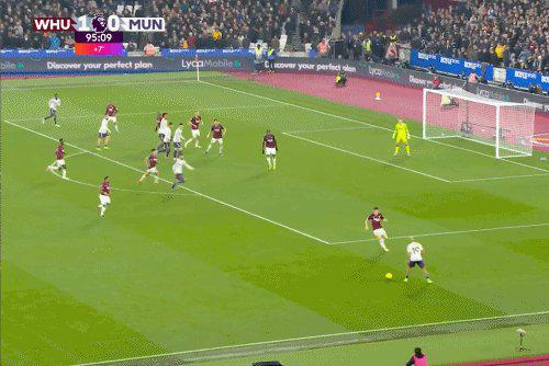 第50分钟,鲍文右路低平球传中,前点绍切克抢点将球捅入,西汉姆1比0曼联。
